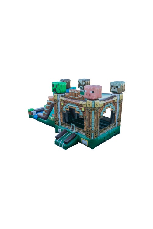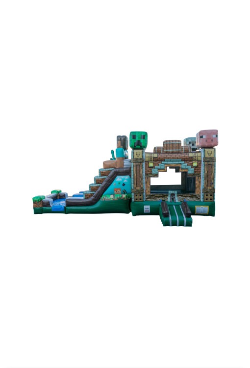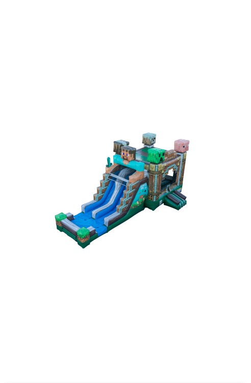 The Pixelated Combo is sure to be the center of attention at your party. This unit is perfect to use inside or outside, and the exciting block-themed design will draw every kid's attention. It features a large bouncer area, basketball hoop and double lane slide with pool which can be used wet or dry. The unit includes mesh sides all around to have full visibility for parents.