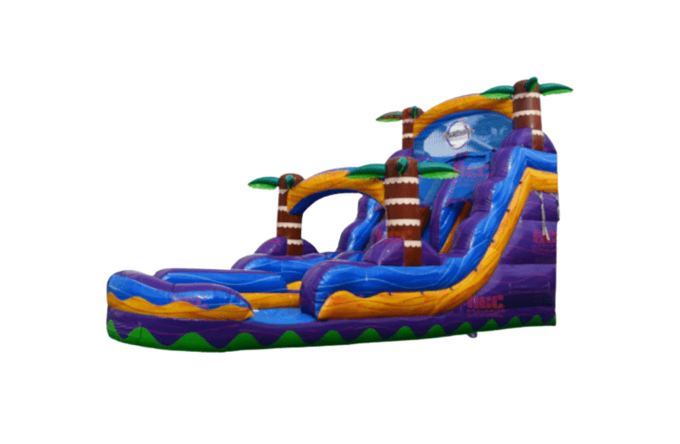 Experience the ultimate thrill of our 18' Tropical Hurricane®. With a double-lane design, this inflated pool slide is made with the highest quality materials, and Seamless Slide Technology it's perfect for any tropical-themed event.